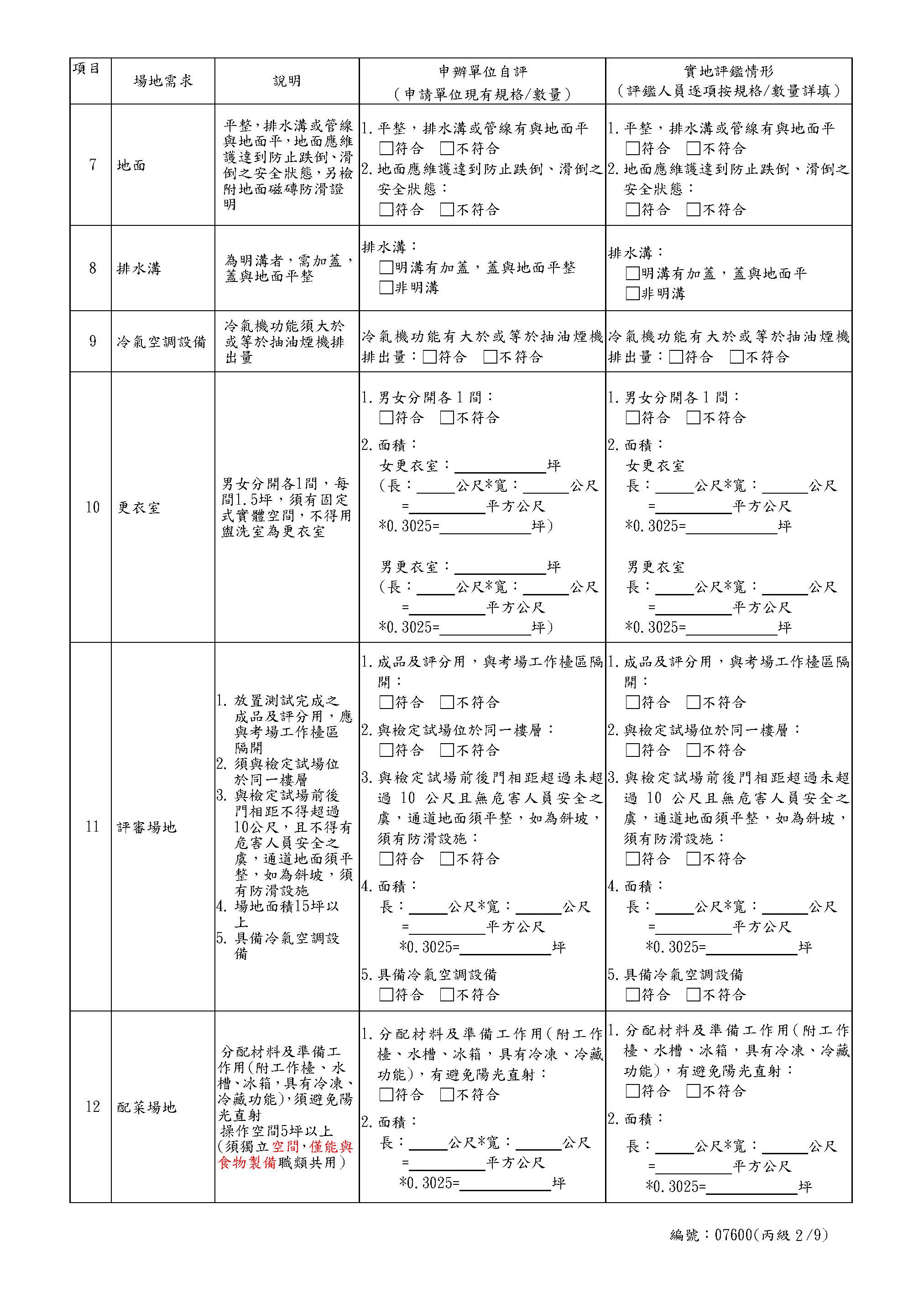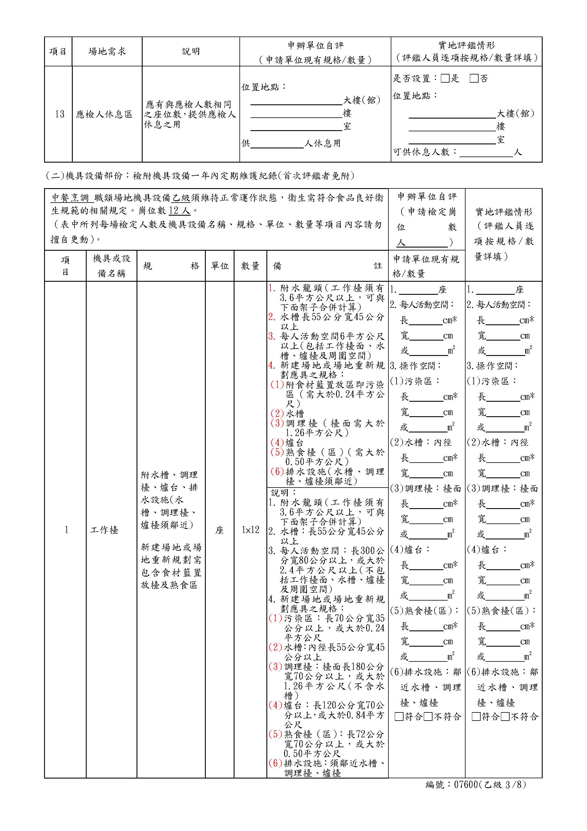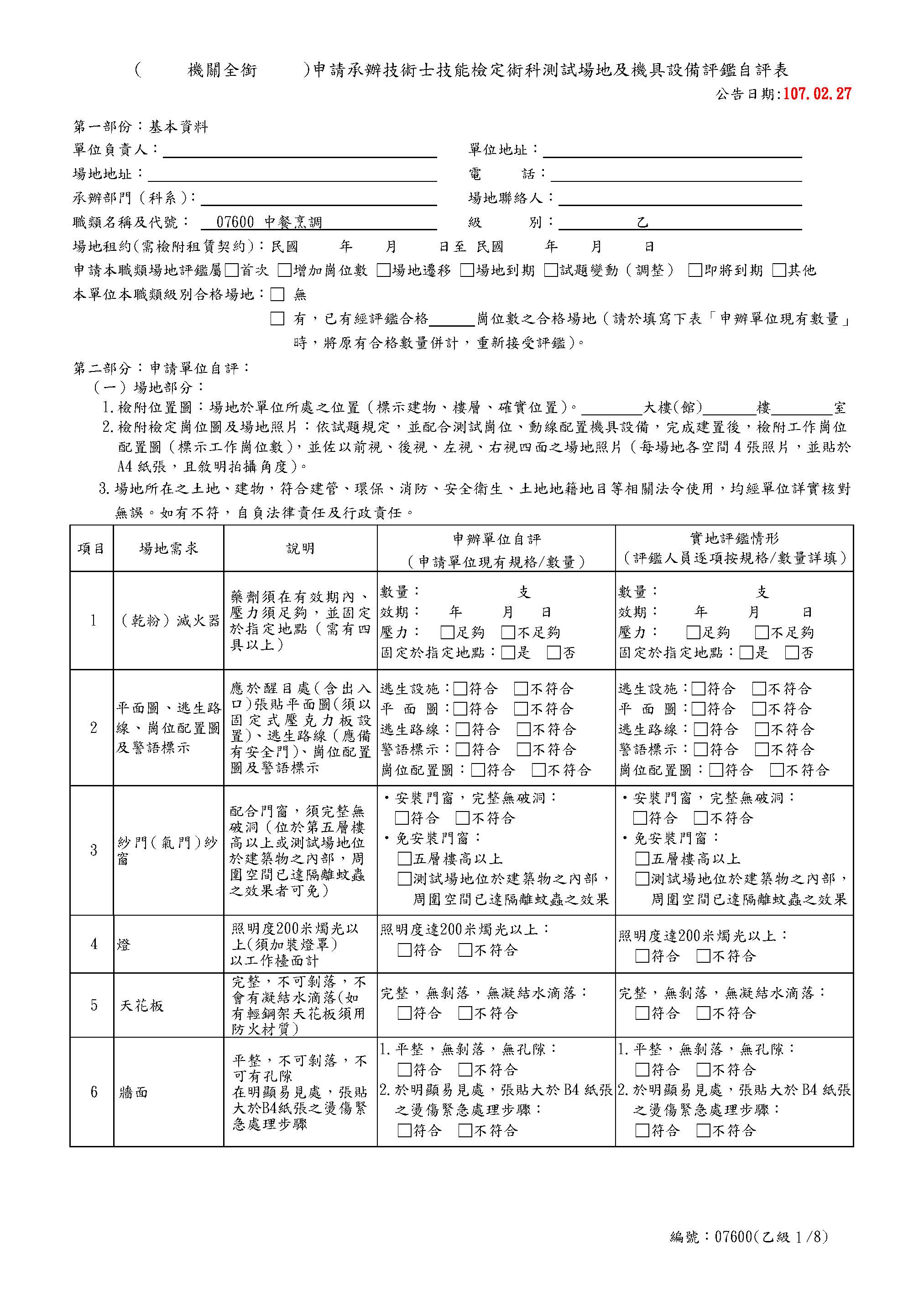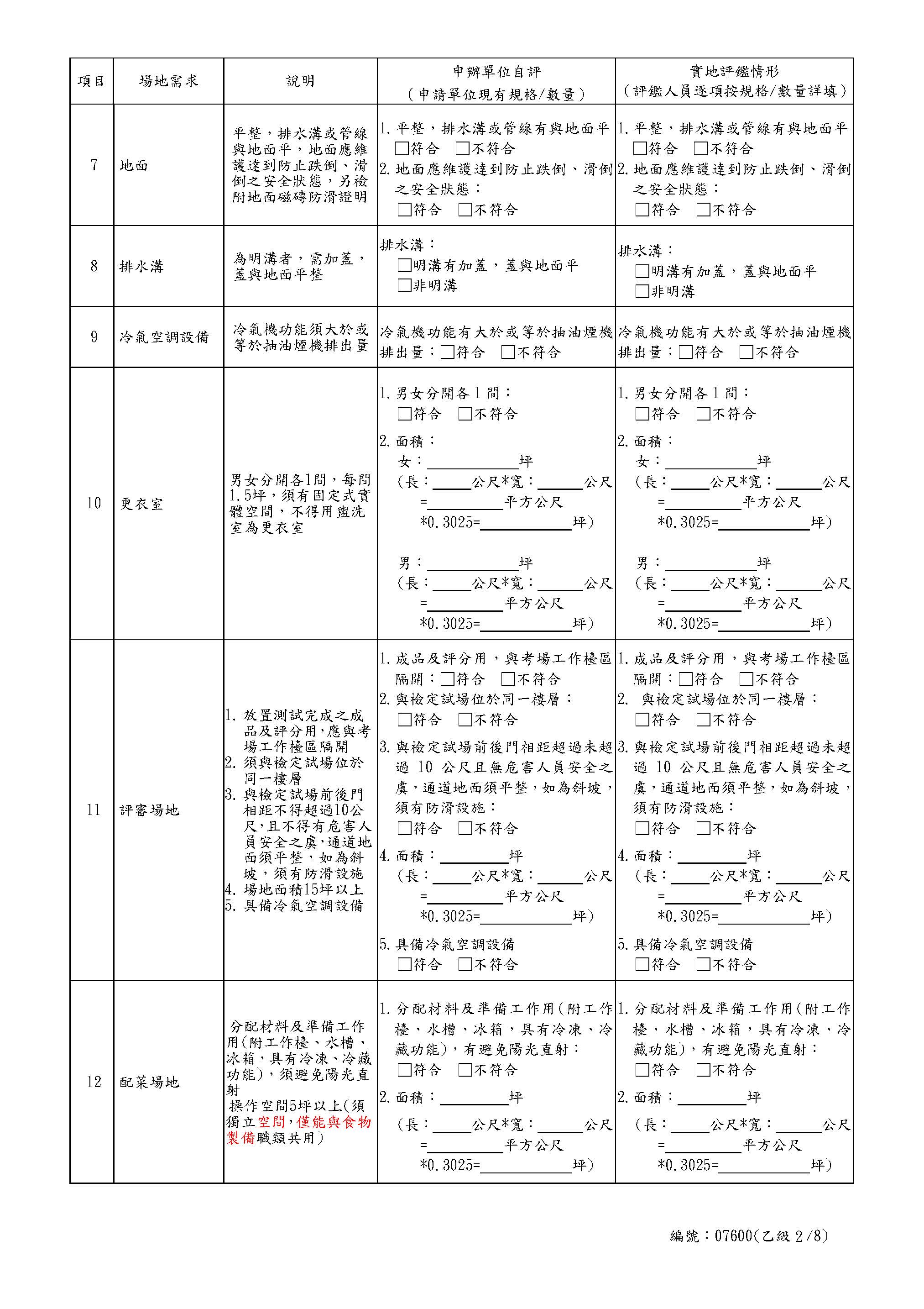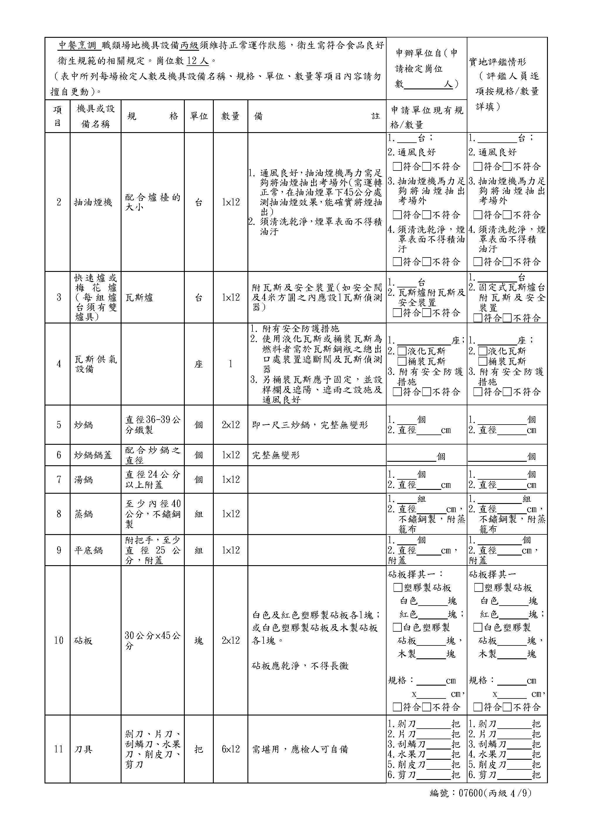 中餐乙級自評表