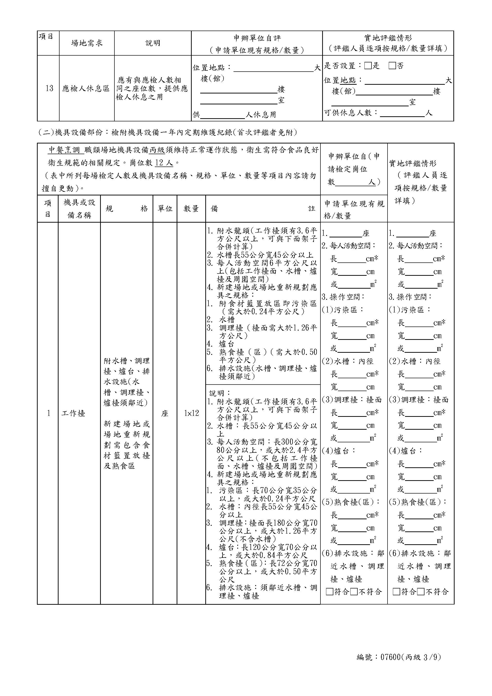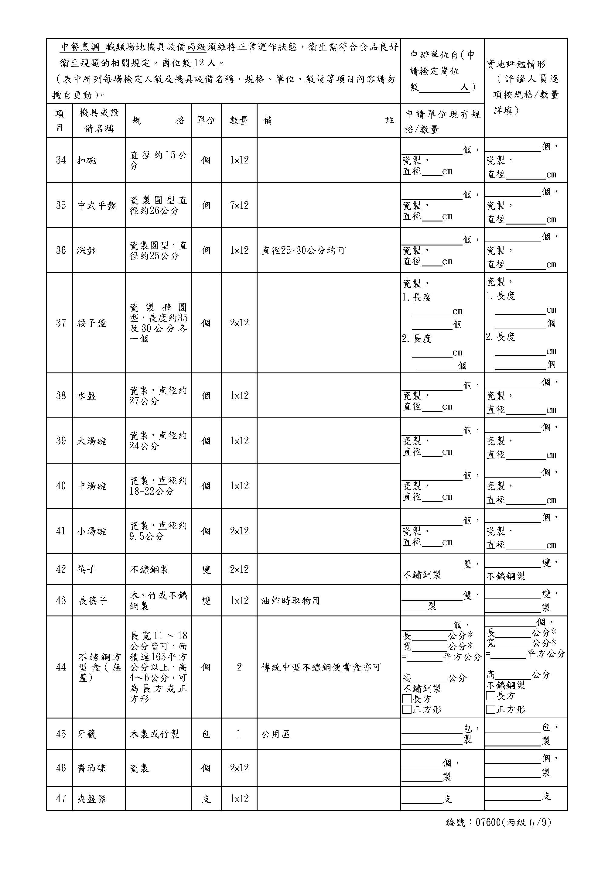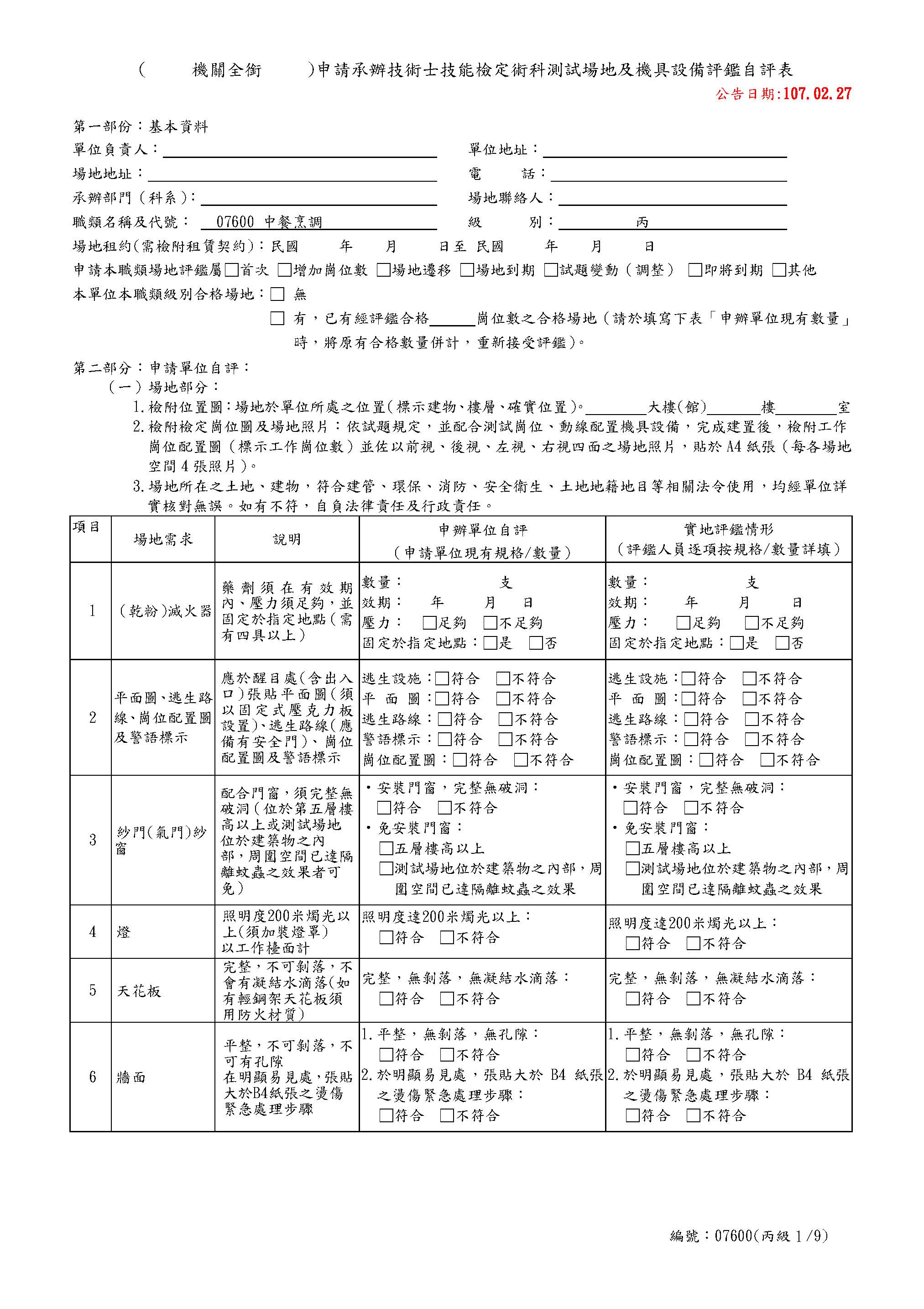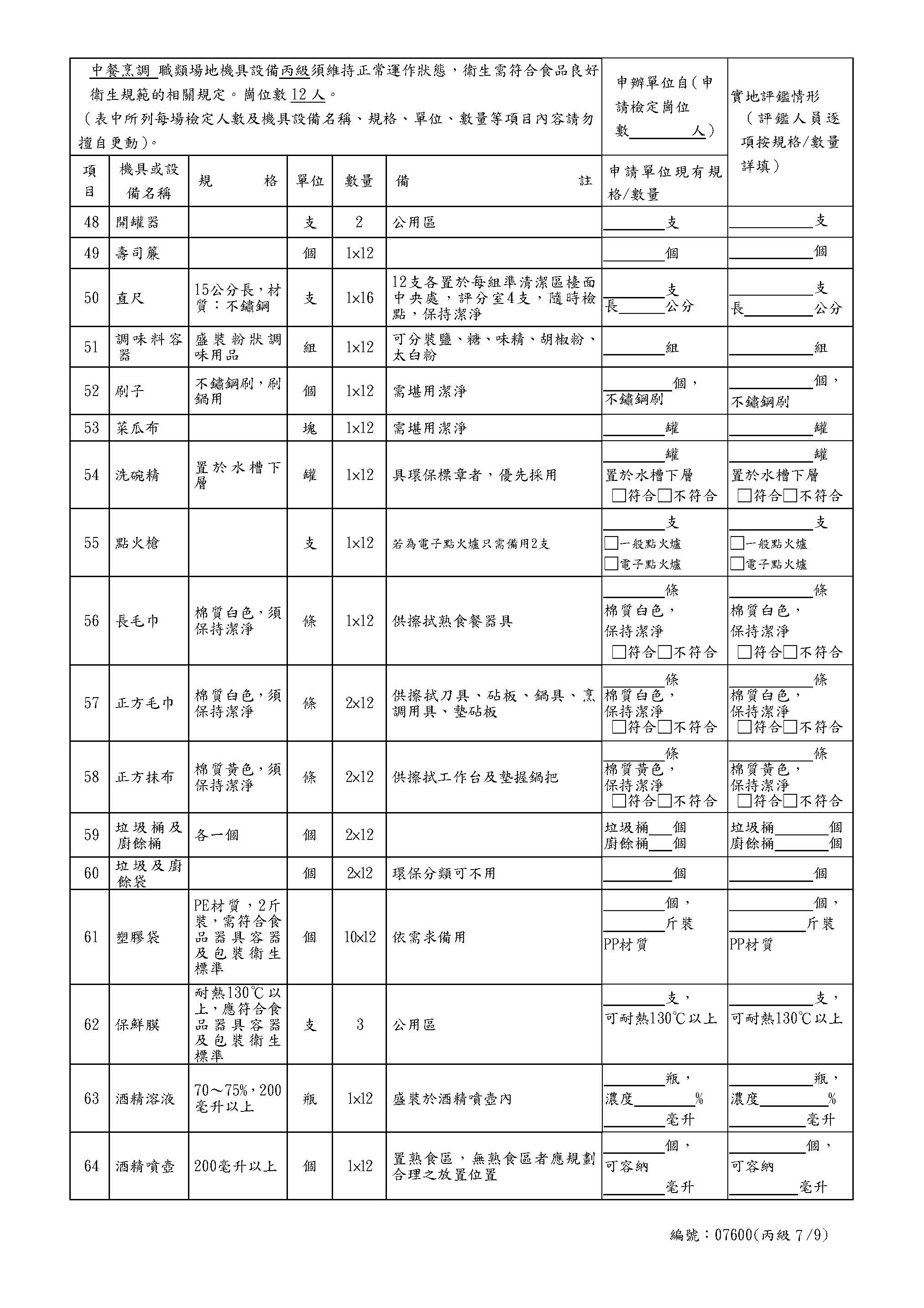 中餐乙級自評表